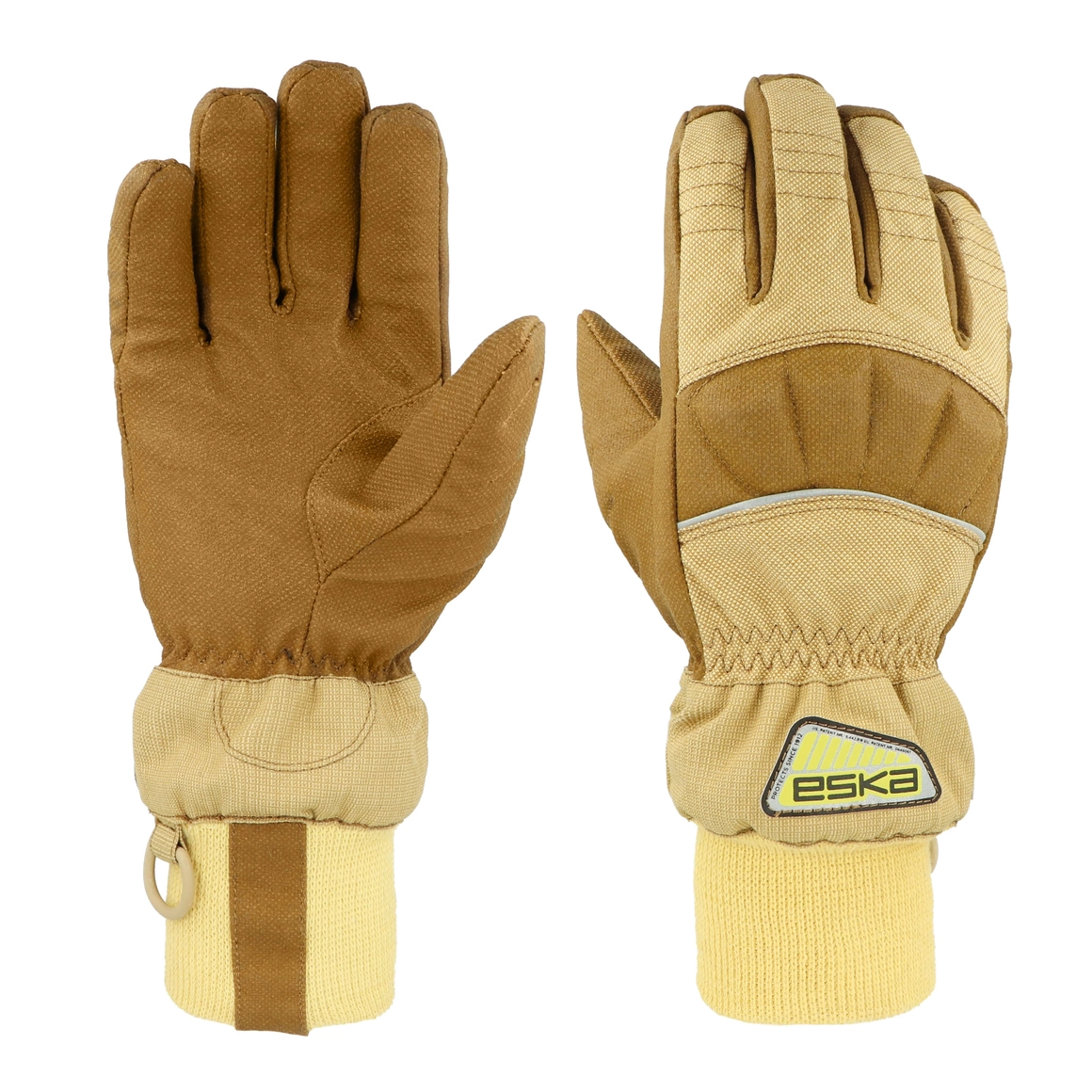 En los Siga PBI Plus 5 se emplea PBI® Powershell como capa protectora exterior en la parte superior de la mano y PBI® Gold con recubrimiento PROmarble, en la parte inferior. Los tejidos PBI® Gold se destacan en particular por sus características ignífugas excepcionales. Incluso al entrar en contacto con llamas y altas temperaturas, las áreas críticas de la prenda no se desgarran a pesar del constante movimiento y los altos niveles de exigencia. En la parte superior de la mano se halla un protector de nudillos patentado, moldeado anatómicamente y resistente al fuego que proporciona la protección perfecta contra golpes, impactos y altas temperaturas. La membrana GORE-TEX®, introducida según la patente de ESKA® desde las puntas de los dedos hasta el extremo inferior, es inseparable de la capa protectora del guante y convierte al Siga PBI Plus 5 en un producto resistente al viento y al agua, así como transpirable.