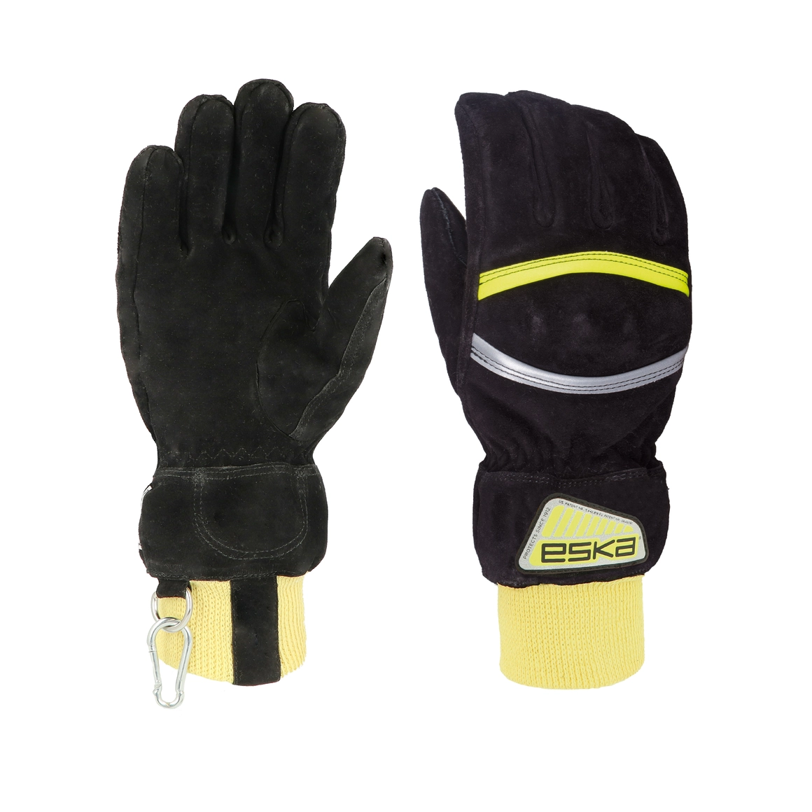 The tactile firefighter glove Triton 5F has a knit cuff and is made of extra high quality calfskin, which does not shrink with heat and has a high flame and water resistance. The anatomically shaped knuckle protector protects against impact and shock. Triton 5F is breathable, waterproof and windproof thanks to its GORETEX CROSSTECH insert.